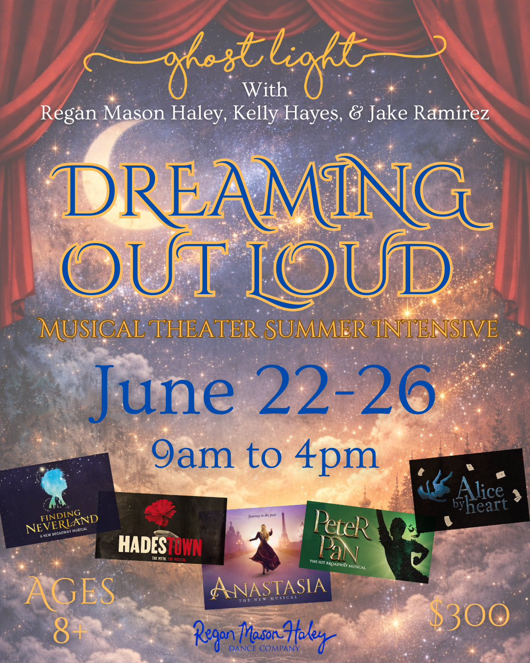 Step into a world where imagination takes center stage at the 2026 ghostlight Summer Intensive at Regan Mason Haley Dance Company! This year’s musical theater intensive, Dreaming Out Loud, celebrates the magic of dreaming big and the stories that come alive when we dare to follow our hearts.